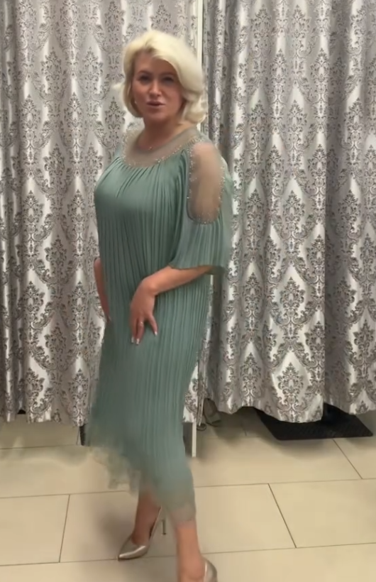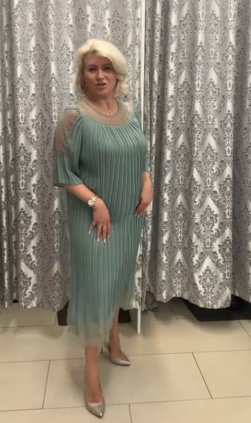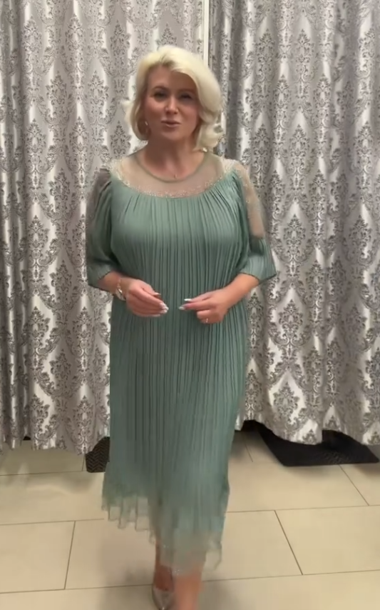 Marszczona siateczkowa tkanina + zdobienia z koralików + prześwitująca spódniczka z krótkim rękawem