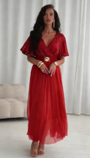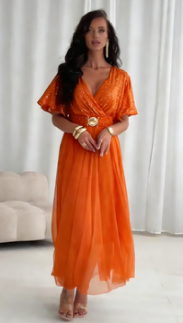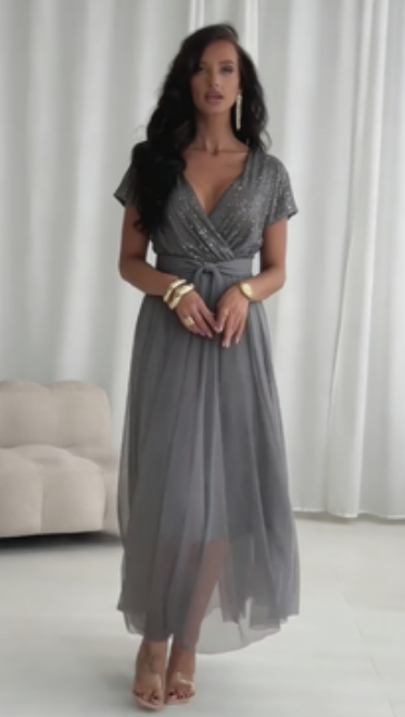 🔥2026 Najlepiej sprzedający się produkt - 50% zniżki🔥 Sukienka z krótkim rękawem z tiulu i cekinów
