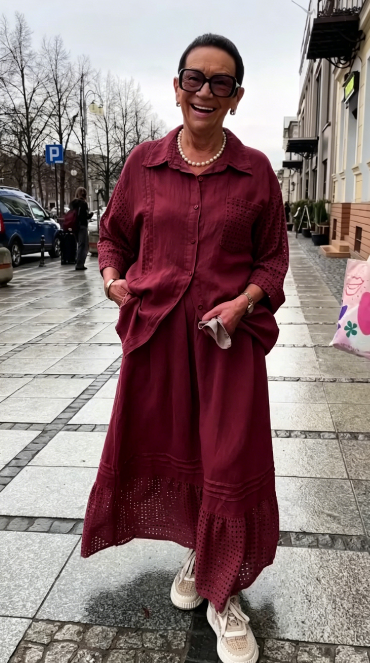 Zestaw składa się z luźnej koszuli i długiej spódnicy, wykonanych z wysokiej jakości,