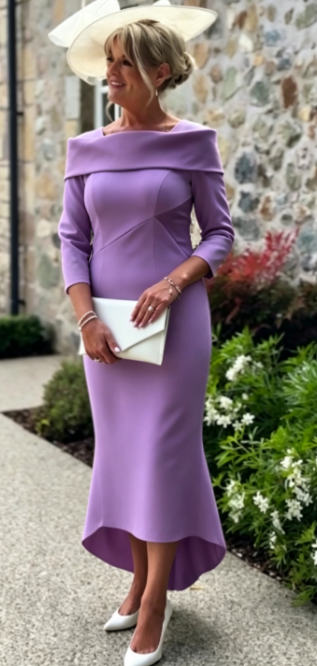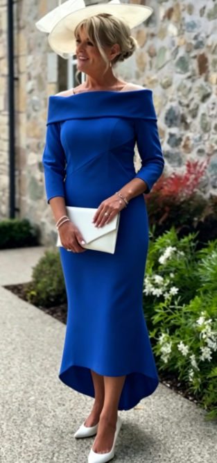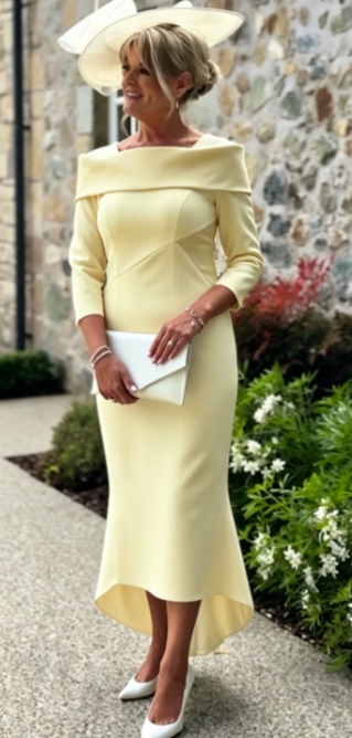 Stylowa sukienka w formie ogona, z dekoltem w stylu łódź i delikatnymi zdobieniami.