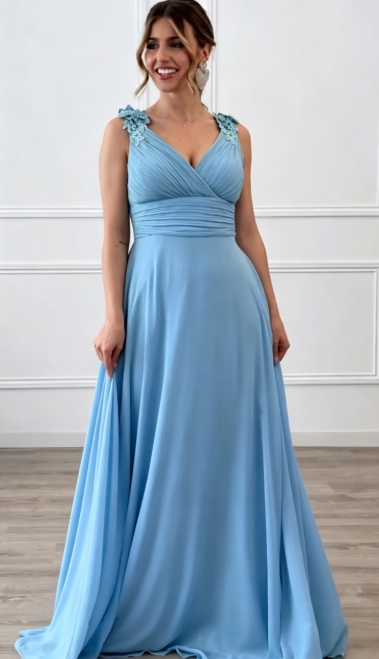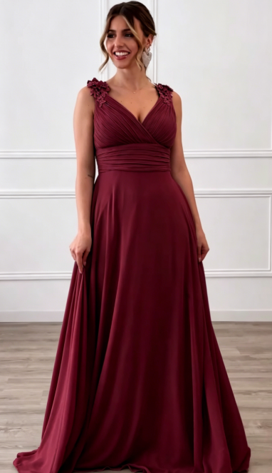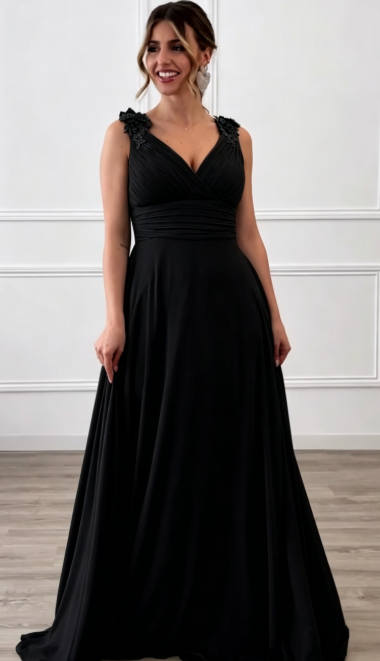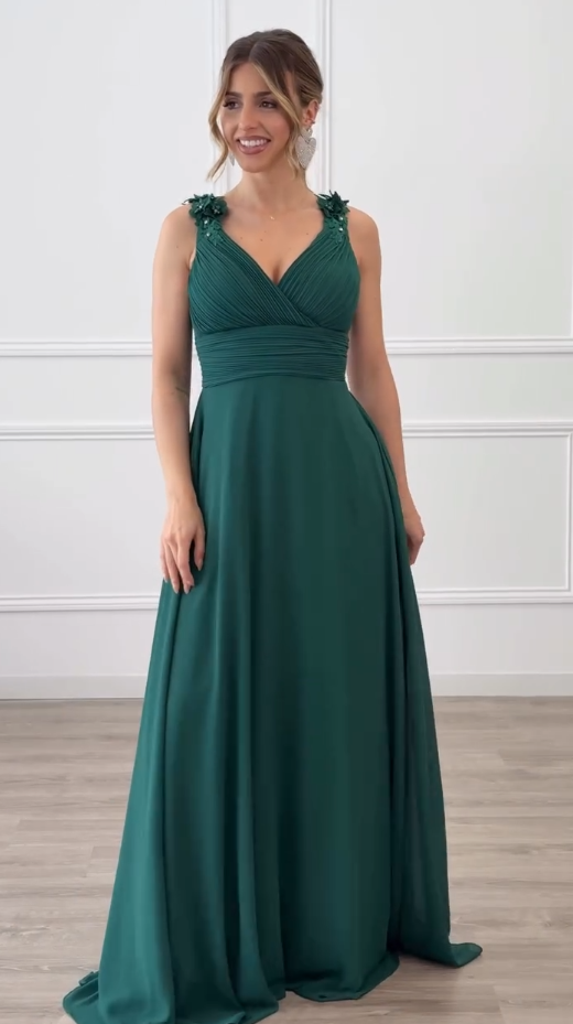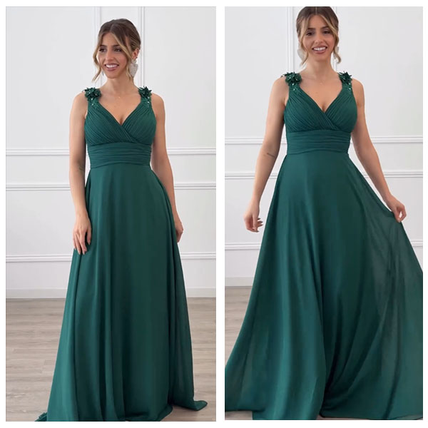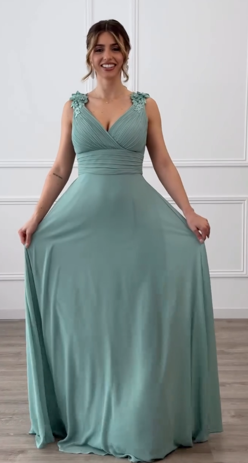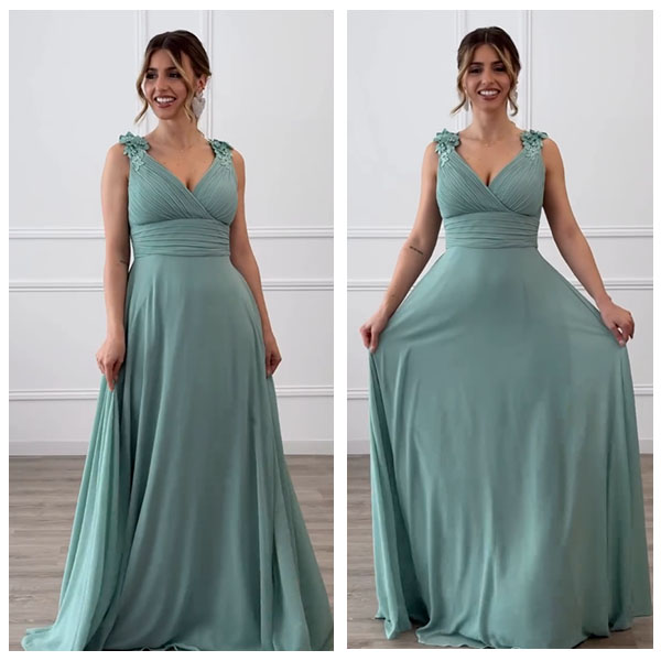 ✨ Suknia wieczorowa z szyfonu z dekoltem w szpic | Głęboki dekolt
