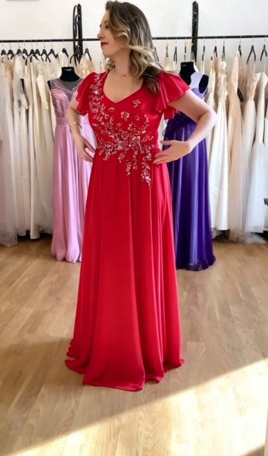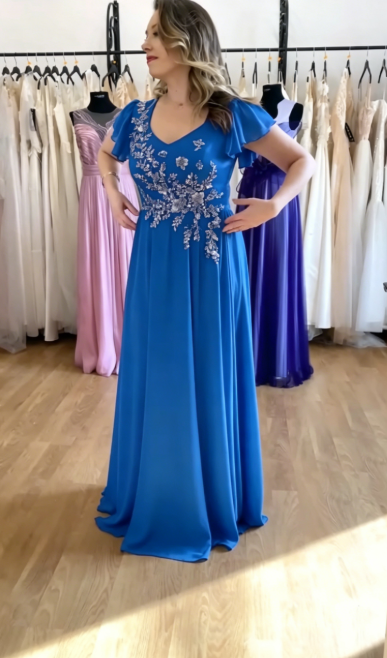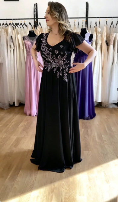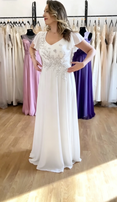 Suknia z ozdobnymi aplikacjami z cekinami i lekkiego materiału