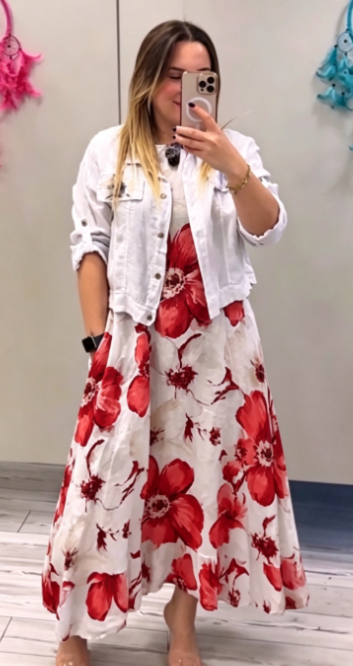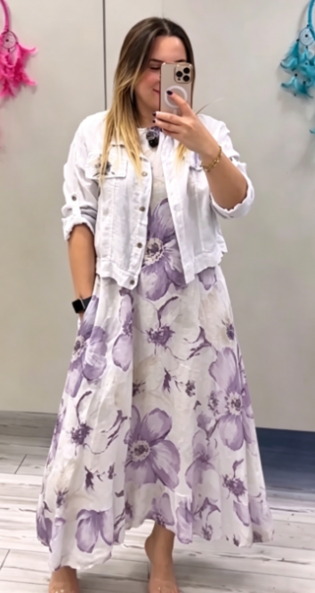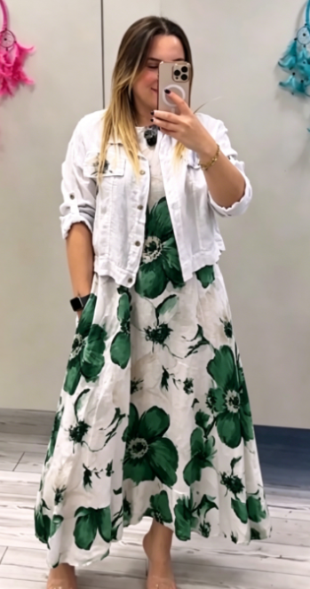 Sukienka ma luźny krój w kształcie litery A i pięknie układa się na ciele,
