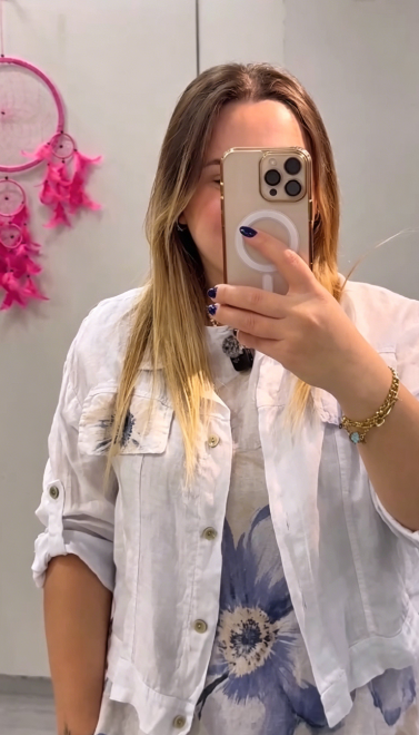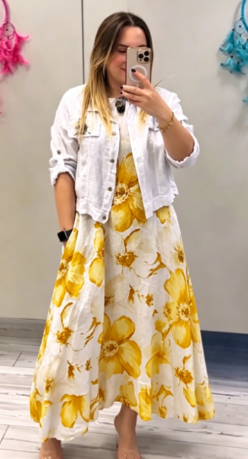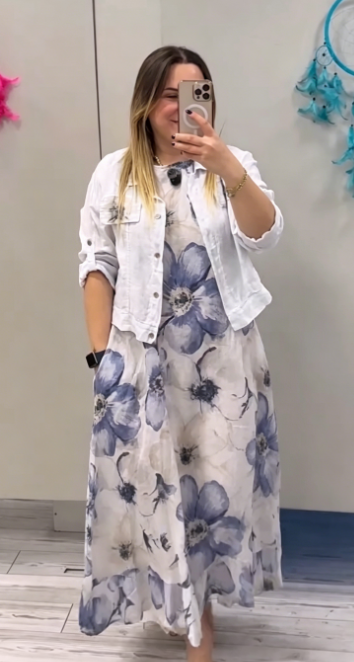 co zapewnia swobodny i uniwersalny wygląd, który doskonale komponuje się z sukienką.